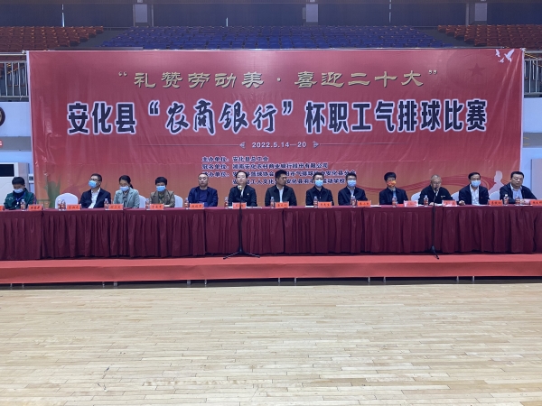 5月14日,由安化县总工会主办的“礼赞劳动美·喜迎二十大”全县“农商银行”杯职工气排球比赛在县羽毛球学校正式拉开帷幕。安化县委副书记、统战部部长潘文剑出席开幕式并宣布比赛开始。