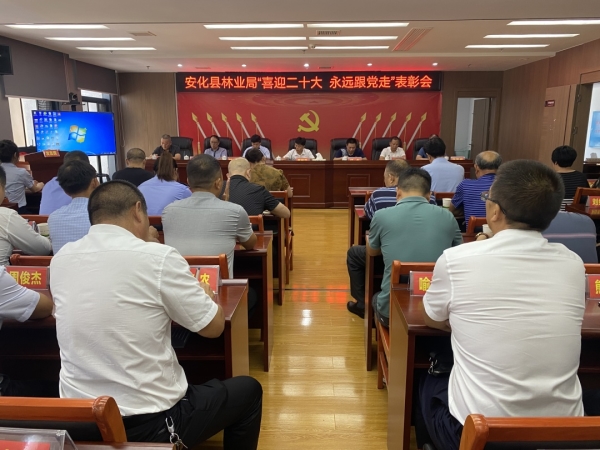 7月5日,安化县林业局召开“喜迎二十大,永远跟党走”表彰大会。现场表彰了一批优秀共产党员、优秀党务工作者、先进基层党组织和2021年度绩效评估一类单位,并为“光荣在党50年”的老党员颁发纪念奖章。勉励广大干部职工要以今天受表彰的先进集体和个人为榜样,以林业人的担当精神,永葆“闯”的精神、“创”的劲头、“干”的作风,团结奋斗,砥砺前行。