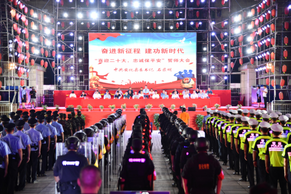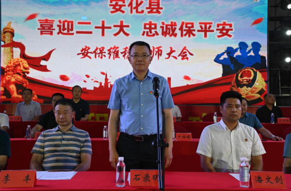 7月13日晚,安化县举行“喜迎二十大,忠诚保平安”安保维稳誓师大会,动员全县各级各部门统一思想、坚定信心、乘势而上,坚决打赢党的二十大安保维稳攻坚战。安化县委书记石录明出席誓师大会并讲话。