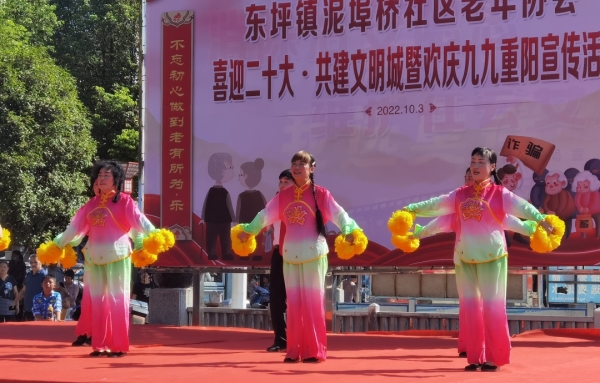 10月3日,东坪镇泥埠桥社区老年协会举行“喜迎二十大·共建文明城暨欢庆九九重阳”文艺汇演。