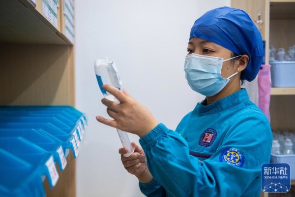 在湖南省人民医院ICU病房治疗室,徐芙蓉在配药(2022年9月9日摄)。新华社记者 陈思汗 摄