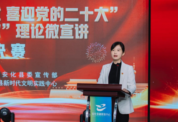10月12日,“学金句 展成就 喜迎党的二十大”爱国主义教育基地解说决赛和“山乡有理”理论微宣讲决赛在安化县融媒体中心的多功能演播厅举行。安化县委常委、宣传部部长王思婷和副县长阳锋分别致辞。