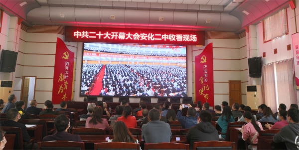 安化二中集中收看中国共产党第二十次全国代表大会开幕会。