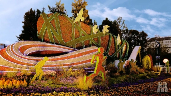 △北京长安街沿线的“健康生活”主题花坛。(总台央视记者魏帮军拍摄)