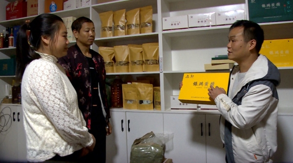 在中医药健康产业园,湖南银鸿农业发展有限公司的总经理蒋双辉正在给客户讲解公司产品。近年来,银鸿农业聚焦黄精产业,集种植、加工、科研、销售和药食同源文化传播于一体,带动了我县黄精产业的发展,也带领当地种植黄精的500余户农户走上了小康之路。