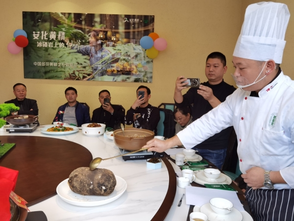 11月16日,在安化县中医药健康产业发展服务中心组织的药膳开发品鉴会,以安化黄精、安化五加皮、安化玉竹等本地药材为原材料,联手研究开发药膳菜品受到与会嘉宾好评。为推广安化药膳,湖南山货出湘农旅集团已开设了两家黄精宴餐馆。