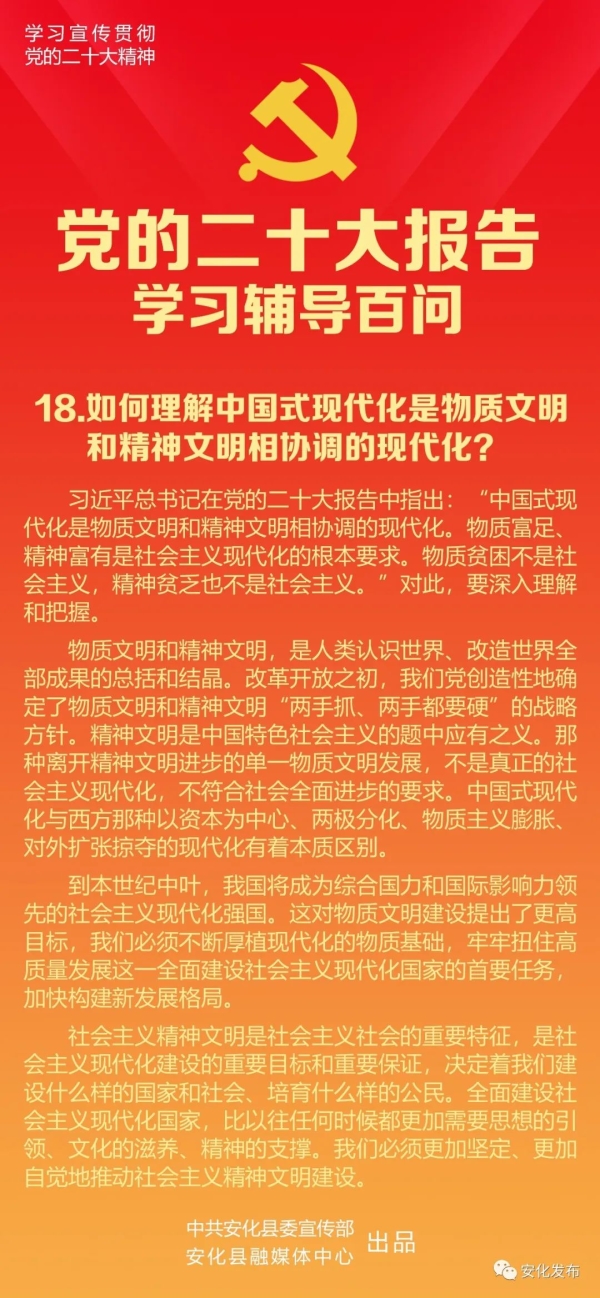 二十大报告辅导百问|如何理解中国式现代化是物质文明和精神文明相协调的现代化?