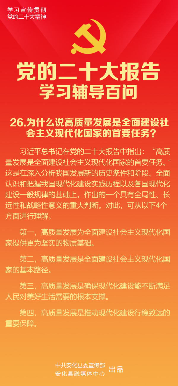 二十大报告辅导百问|为什么说高质量发展是全面建设社会主义现代化国家的首要任务?