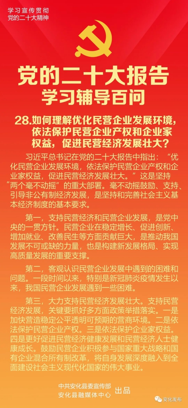 二十大报告辅导百问|如何理解优化民营企业发展环境,依法保护民营企业产权和企业家权益,促进民营经济发展壮大?