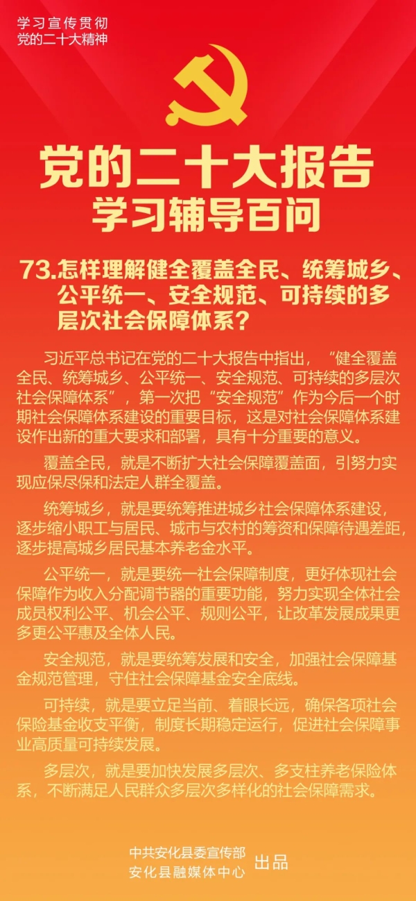 针对目前社会保障基金收支规模不断扩大,基金运行安全风险更加凸显的实际,习近平总书记在党的二十大报告中指出,“健全覆盖全民、统筹城乡、公平统一、安全规范、可持续的多层次社会保障体系”,第一次把“安全规范”作为今后一个时期社会保障体系建设的重要目标,这是对社会保障体系建设作出新的重大要求和部署,具有十分重要的意义。