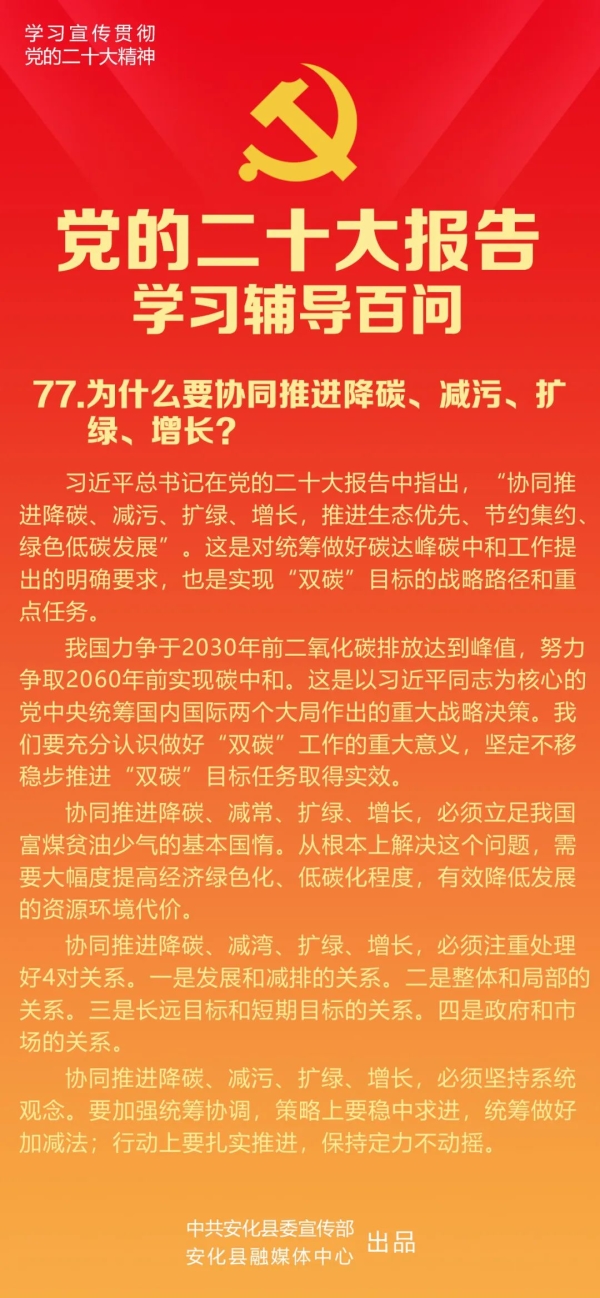 习近平总书记在党的二十大报告中指出,“协同推进降碳、减污、扩绿、增长,推进生态优先、节约集约、绿色低碳发展”。这是对统筹做好碳达峰碳中和工作提出的明确要求,也是实现“双碳”目标的战略路径和重点任务。