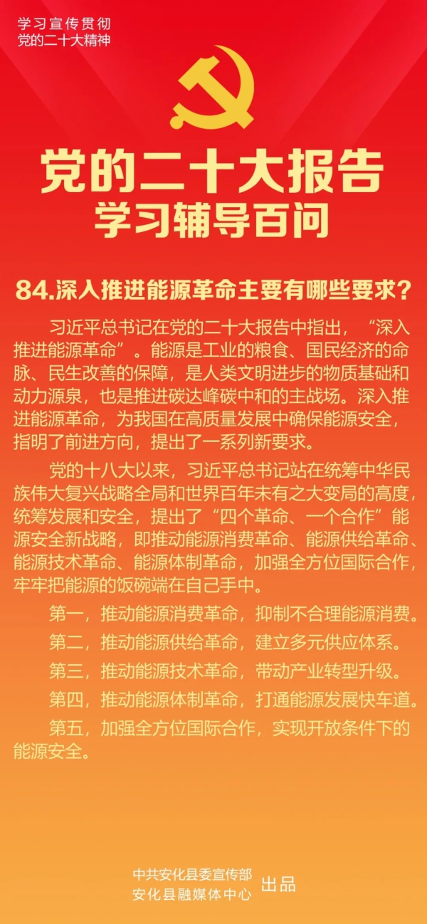 习近平总书记在党的二十大报告中指出,“深入推进能源革命”。能源是工业的粮食、国民经济的命脉、民生改善的保障,是人类文明进步的物质基础和动力源泉,也是推进碳达峰碳中和的主战场。深入推进能源革命,为我国在高质量发展中确保能源安全,指明了前进方向,提出了一系列新要求。